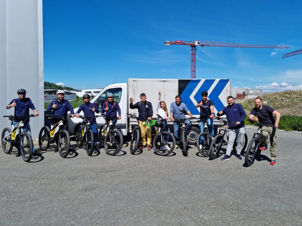 Kurzarbeit, das Homeoffice, das Testen und das Zuhause bleiben, wenn man infiziert war. Aber wir haben das letzte Jahr gemeistert und das zur Freude aller. Zum Dank für die Treue, das Verständnis und die Leistungsbereitschaft, welche alle an den Tag gelegt haben, wurde das Projekt E-Bike von der Geschäftsleitung lanciert.